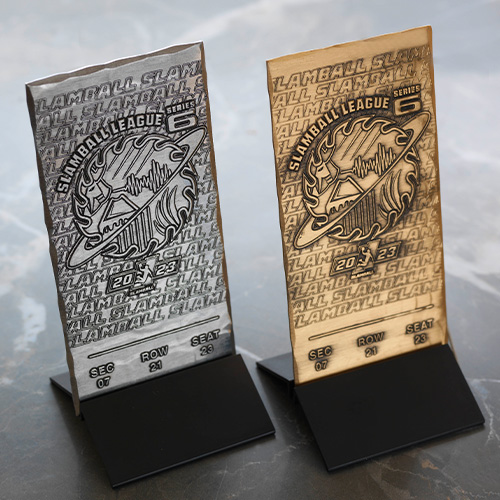 Thoughtfully handcrafted metal tickets serve as a lasting testament to the recipient’s accomplishments for years to come.