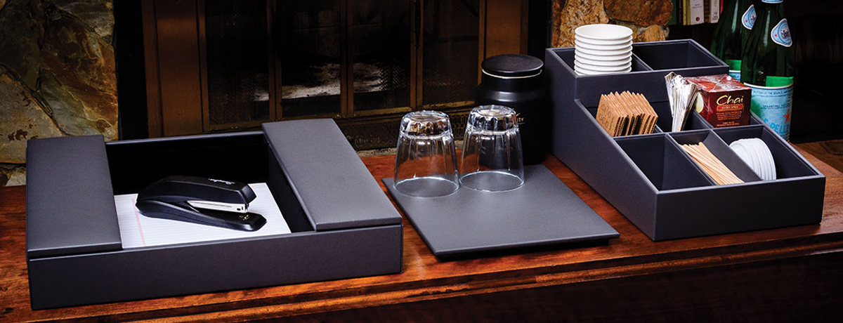 First things first: what are desk and conference room accessories, and why should you sell them? We’re not talking about your average pen or desk calendar. We’re talking about high-end leather goods, such as: