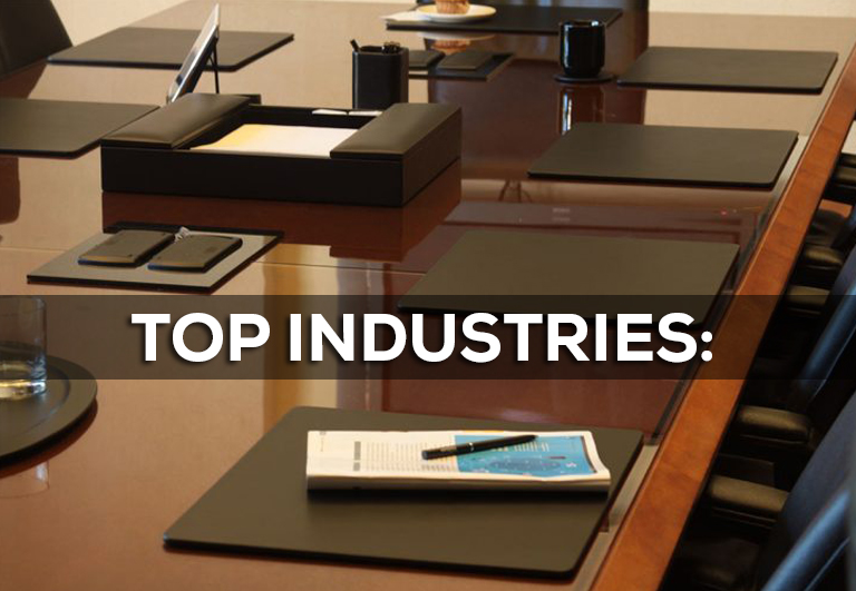 While it’s true leather desk and conference room promos are big sellers with corporate accounts, the sales potential doesn't end there. You can sell high-end promos like leather coasters and conference pads to any business with an office or board room, corporate or not. Maximize your sales potential by taking advantage of the top industries and sales opportunities below.