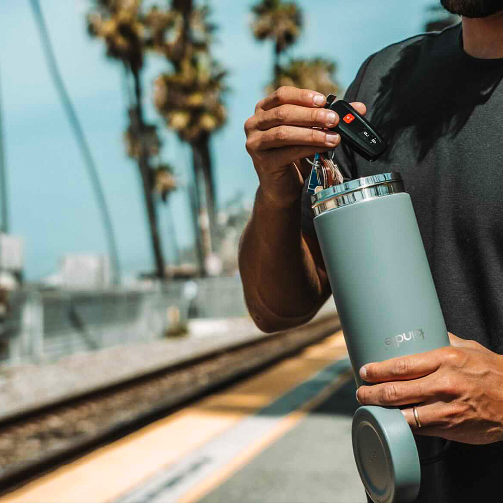 “Never mind that these keep drinks hot or cold. They actually stash keys, a credit card and money in the hidden compartment at the bottom. Bye-bye heavy-bag-schlepping!”