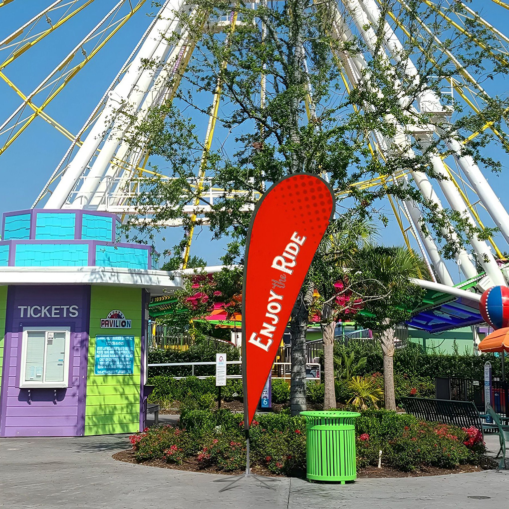 These feather flags feature dye-sublimation printing for vivid graphics that capture attention, no matter where they’re displayed.