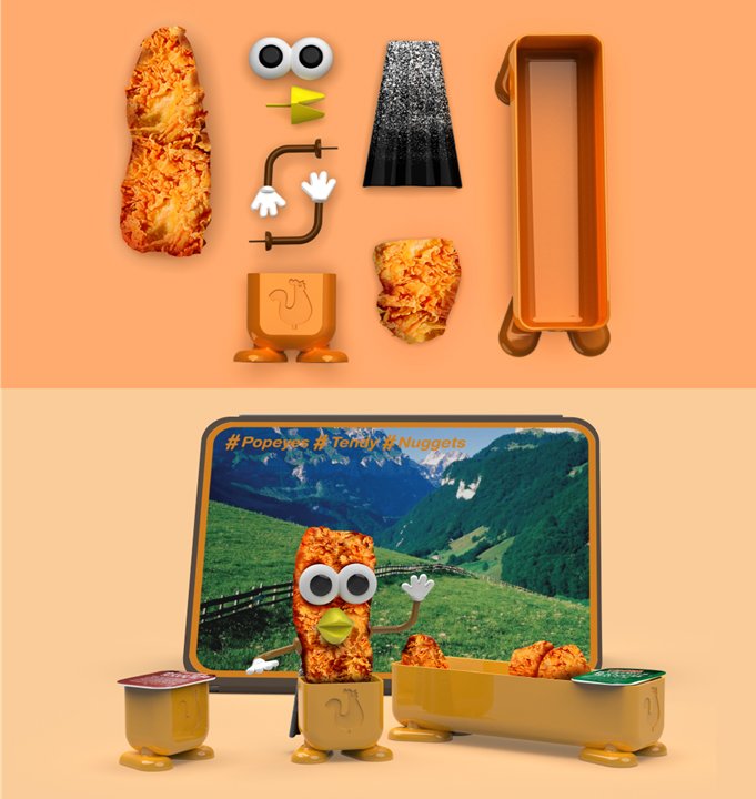 Concept: This interactive toy allows children to customize their chicken tenders with eyes, arms, a beak and a cape, creating a fun and engaging dining experience. The toy's legs double as holders for sauce containers, making it a truly practical and playful dining experience.