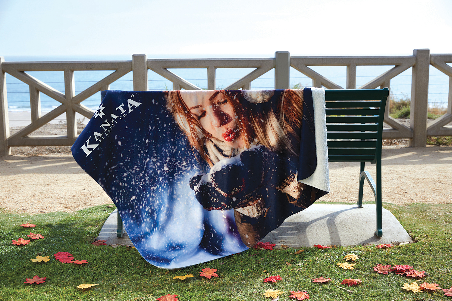 Last but not least, let's talk decoration: You'll be hard-pressed to find promos with a larger imprint area than blankets. Think about these giant branding tools like warm and cozy billboards for your clients – after all, they're almost as big, but way cuddlier. Supersized imprints not your client's thing? That's OK! Kanata Blanket offers embroidery, sublimation, lasered patches and direct lasering as well. No matter what your client's style, logo or price point is, they'll have a method to match.