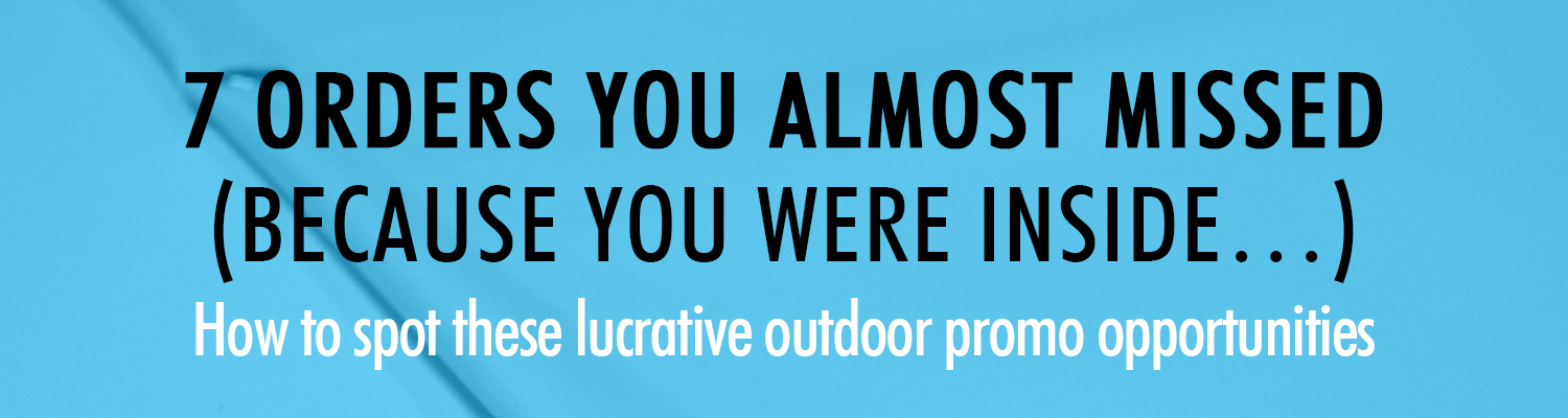 Why pass up these opportunities? You can make great revenue from selling all sorts of outdoor marketing products – things that fly, unfurl, direct, entice, set the stage and even flap at your prospects. You’re most likely already selling promos they use indoors. See how many of these you might have missed and what questions you need to ask to add them to your next sale.