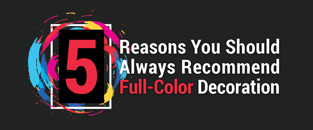 Full-color graphics almost always make a great choice. See for yourself all the reasons it pays (literally!) to present full-color decoration to your clients, plus why it’s way more accessible than people realize, no matter what your client’s budget is.
