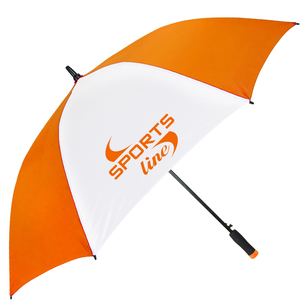 One of the best all-around vented golf umbrellas, available in 17 color combinations, with matching soft-grip handle and all-fiberglass construction.
