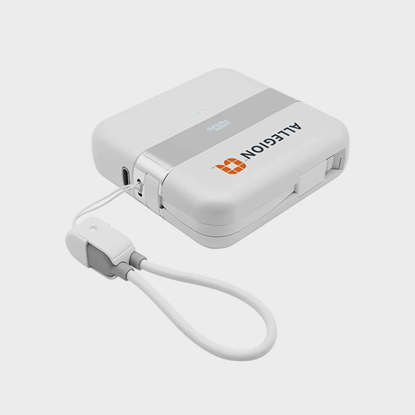 Opens in a new window.This high-capacity power bank with a built-in cable capable of charging laptops and tablets, just like styles seen in stores. It has a sleek metallic casing, and the unit is packaged in a deluxe gift box alongside with a soft velveteen carrying pouch, making is a top choice for gifting or incentives that need to impress.